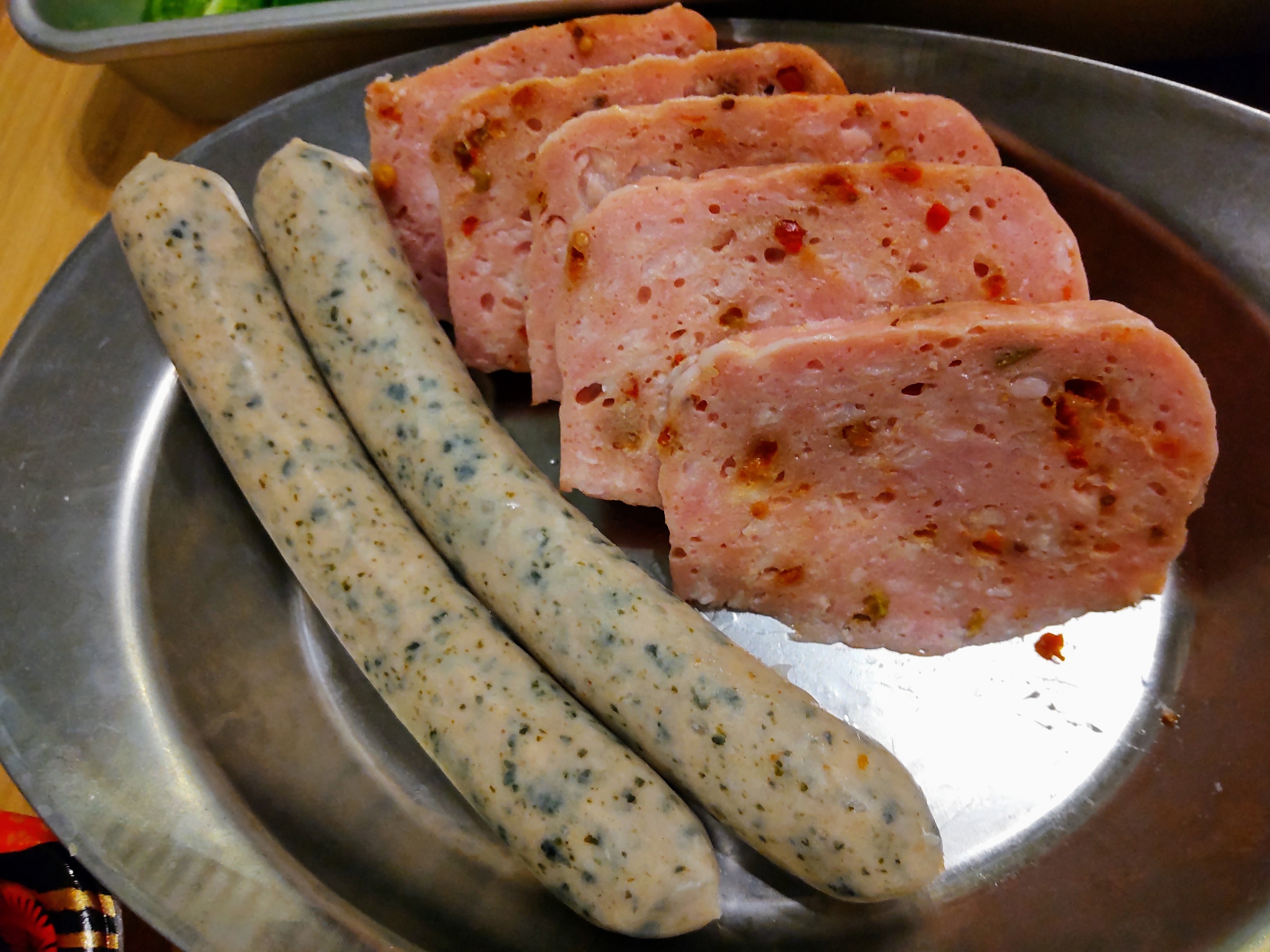 そこに、この前買ってきたいくとせ@みらい平(茨城県つくばみらい市陽光台)さんのおむすびソーセージとミートローフ。
